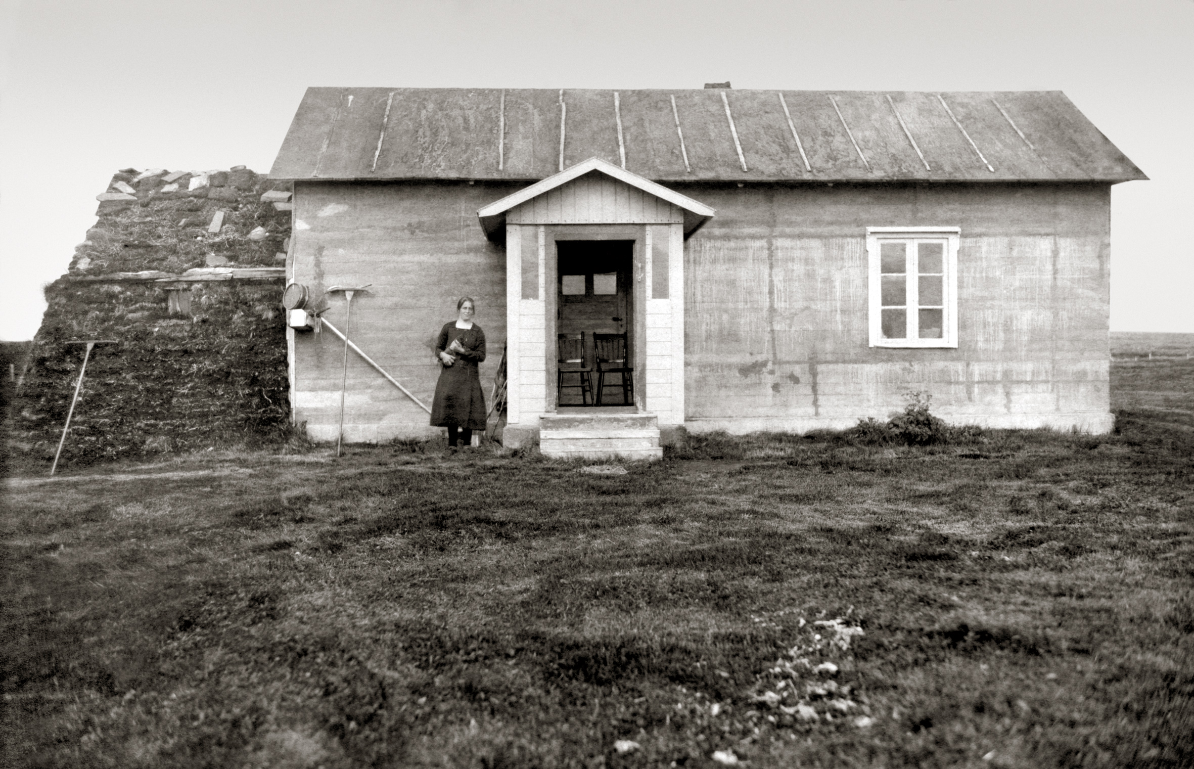 Tyypillinen talo Kervannon kylästä Petsamossa. Turve navetta on asuin huoneen kanssa yhtessä. takaisin kuvavalintaan